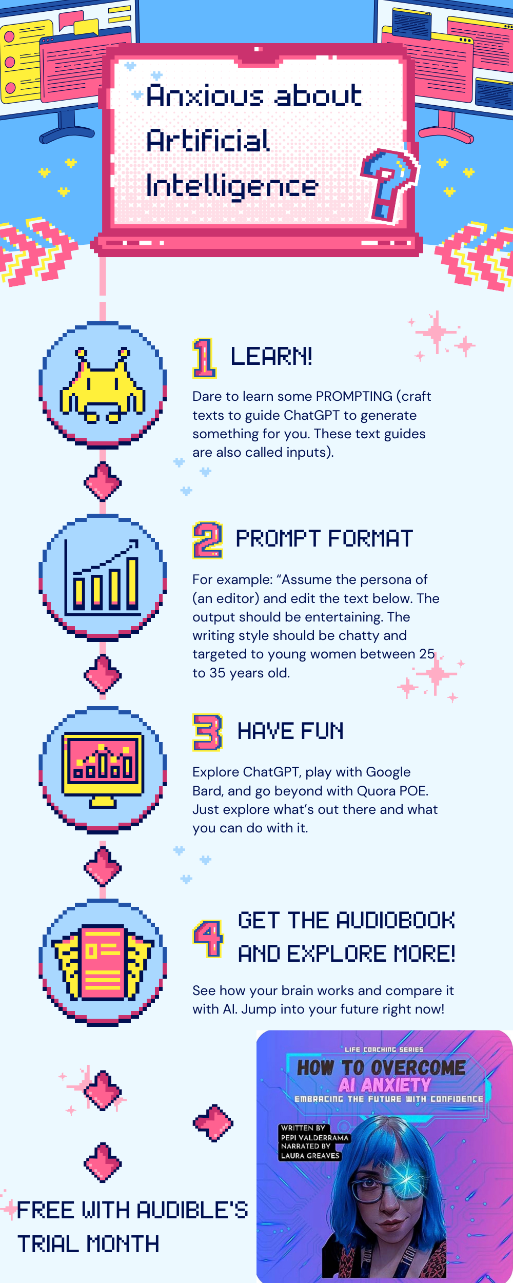 For all the above, please take into consideration the following data about my audiobook How to Overcome AI Anxiety: “Are you having nightmares about AI and its burgeoning role in our world?
